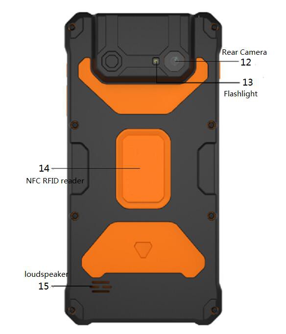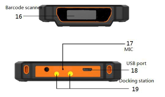Ključ | Opis dugmadi | Dugme: Jedno dugme za skeniranje sa strane (crtični kod i UHF mogu se koristiti zajedno), jedno dugme za napajanje, dugme za jačinu zvuka plus ili minus. Tri fizičke funkcijske tipke (Nazad meni HOME) |